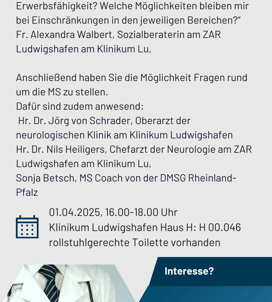 Arzt-Patienten-Dialog 2025 „Diagnose Multiple Sklerose – und nun?“