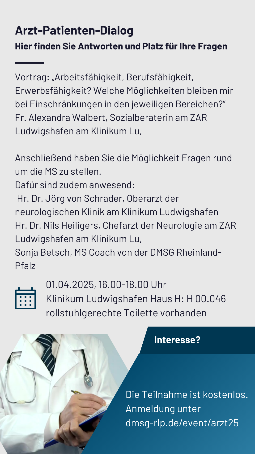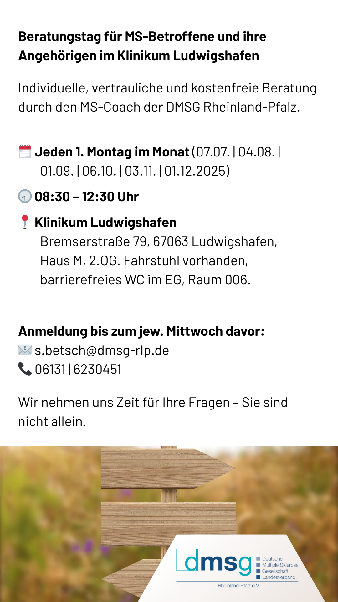 Die Multiple Sklerose Selbsthilfegruppe Speyer trifft sich regelmäßigam 1. Donnerstag im Monat um 18.00Uhrin der Gaststätte „AV 03 - Athletenverein 1903“ 67346 Speyer Raiffeisenstraße 14