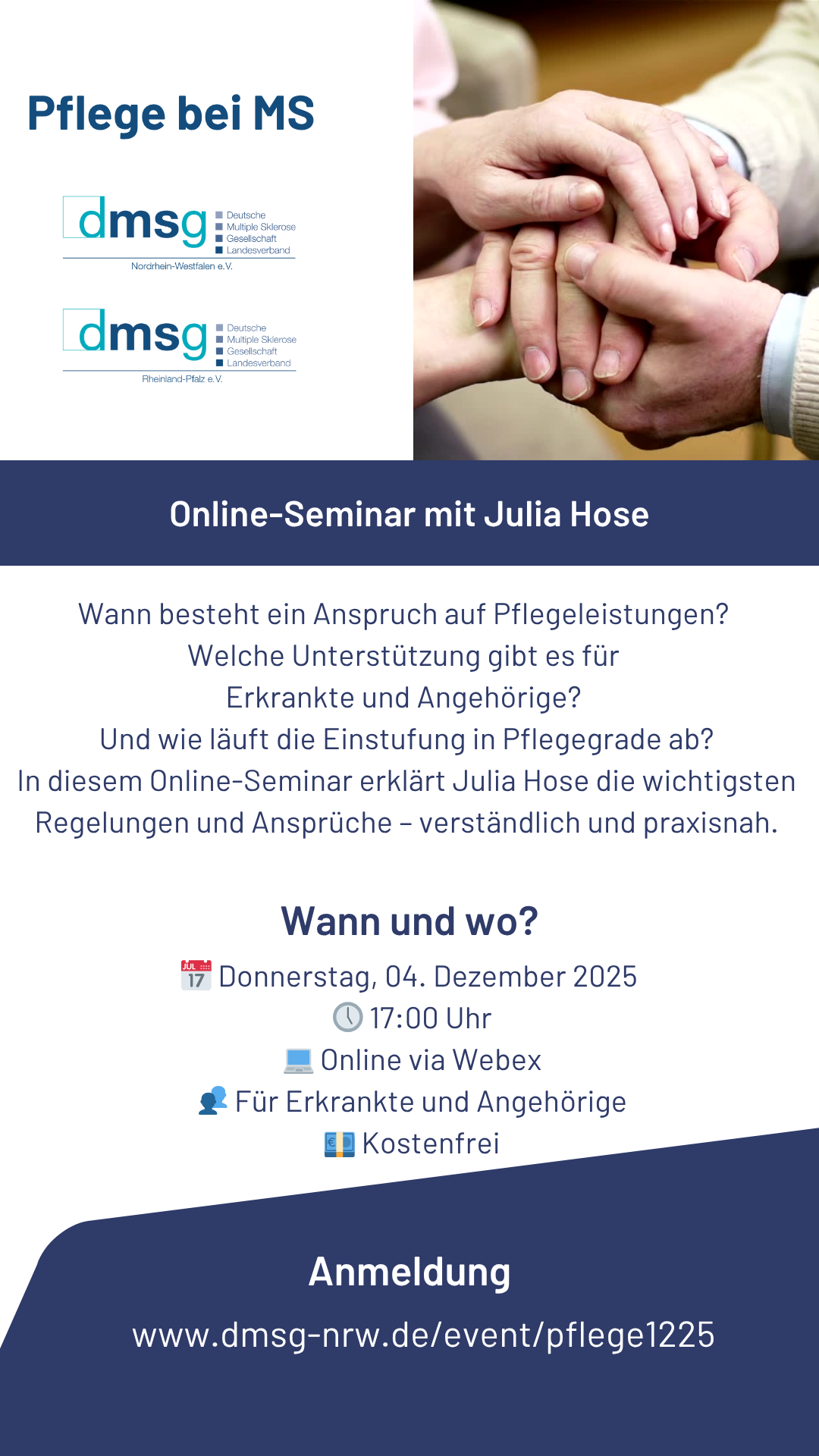 Die Multiple Sklerose Selbsthilfegruppe Speyer trifft sich regelmäßigam 1. Donnerstag im Monat um 18.00Uhrin der Gaststätte „AV 03 - Athletenverein 1903“ 67346 Speyer Raiffeisenstraße 14