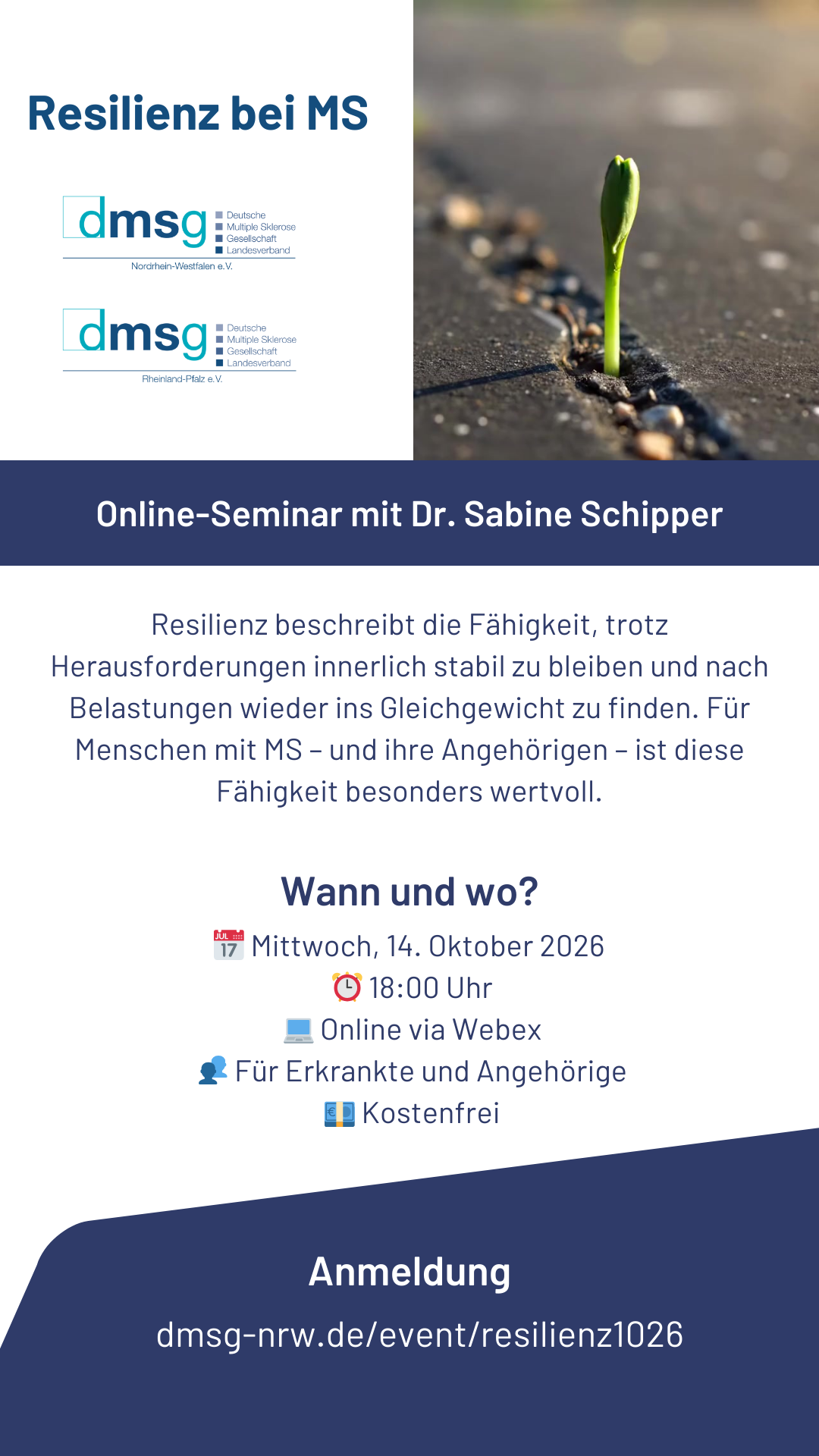 Die Multiple Sklerose Selbsthilfegruppe Speyer trifft sich regelmäßigam 1. Donnerstag im Monat um 18.00Uhrin der Gaststätte „AV 03 - Athletenverein 1903“ 67346 Speyer Raiffeisenstraße 14